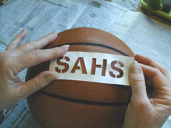 1. Just stick the single adhesive backed stencil on the ball (Nothing to line up or mask!)