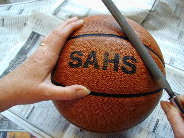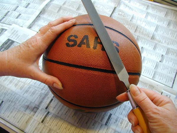 2. Wipe on ink and let dry. The whole process takes about 30 seconds. The ink slowly penetrates deep below the ball's surface. The thick ink forms a seal so it does not leak under stencil openings. Gives incredibly sharp letters. Ink is usually left on to dry for an hour or two.